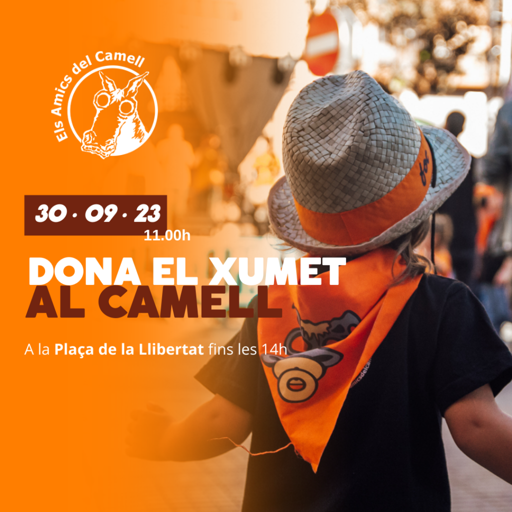 El dissabte de Festa Major al matí podreu venir a veure el Camell a la Plaça de la Llibertat. Els més menuts podran donar el xumet al Camell per demostrar que ja s’han fet grans i rebran un diploma i un obsequi a canvi.